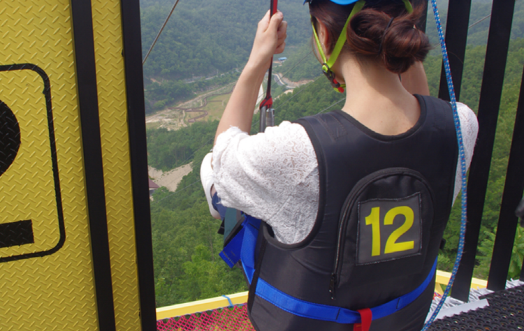 길이 980m의 와이어로프를 타고 남한강 수면 위를 활강하는 레포츠입니다.