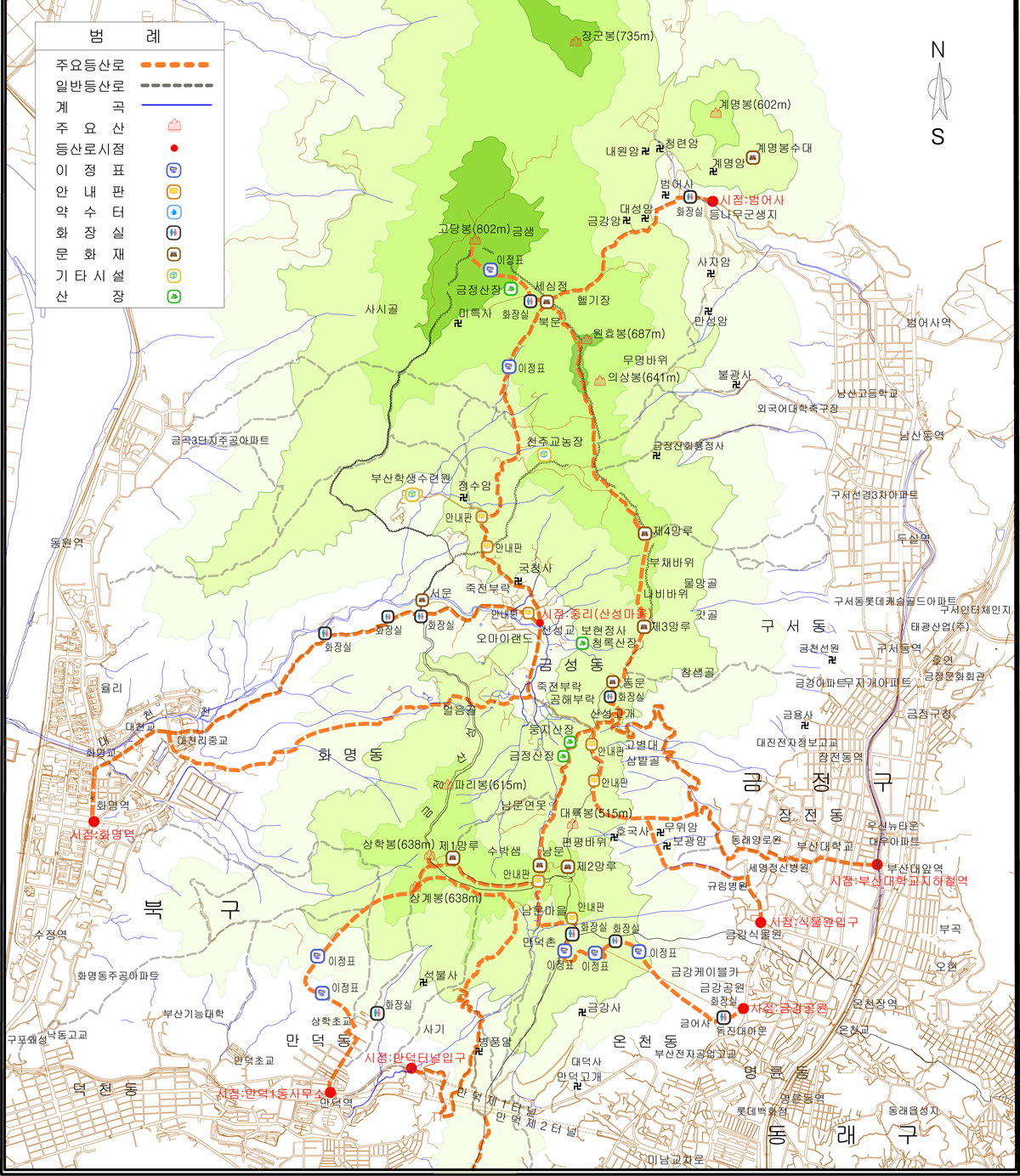 금정산 등산코스 지도