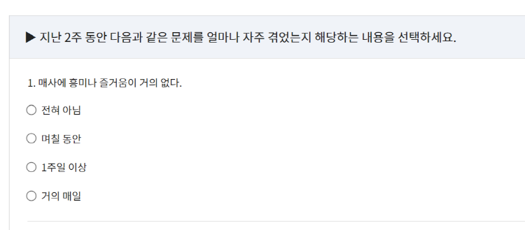 우울증 진단은 정신건강의학과에서 여러 검사와 전문의와의 면담 후에 진단합니다. 하지만 자신에게 우울증 증상이 의심된다면 아래 우울증 테스트를 통해 먼저 확인해 보시고 병원에 내원하시어 상담을 받으시는 걸 권해드립니다.